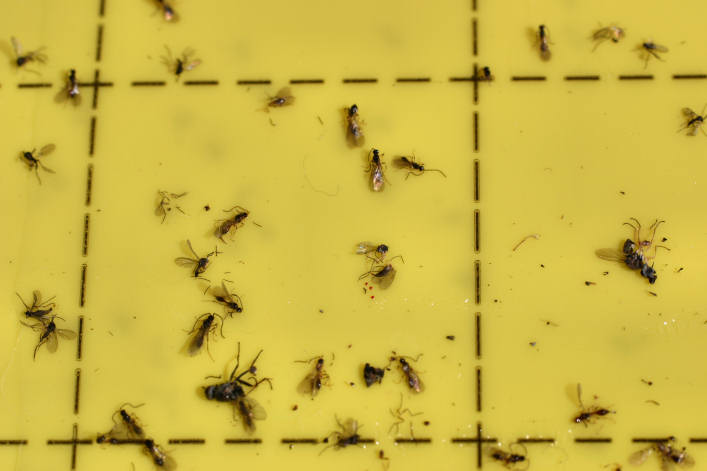 Almost all greenhouse growers find themselves battling little black flying insects in their greenhouses at some point in their careers. Small black flying gnats can be shore flies (Ephydridae family) or fungus gnats (Sciaridae or Mycetophilidae families).