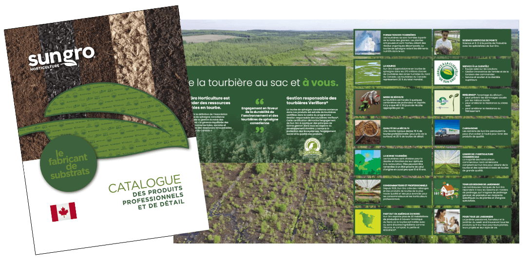 Demandez le catalogue de produits professionnels et de détail au représentant de Sun Gro, ou téléchargez-le ici.