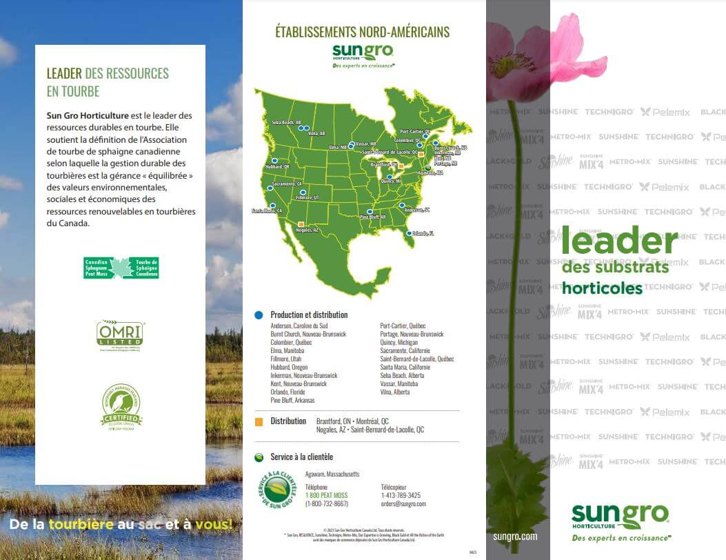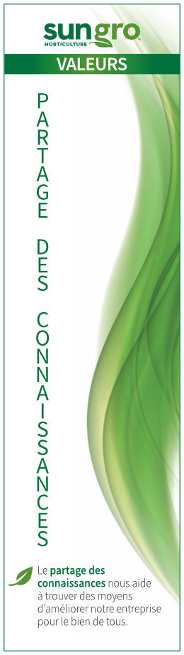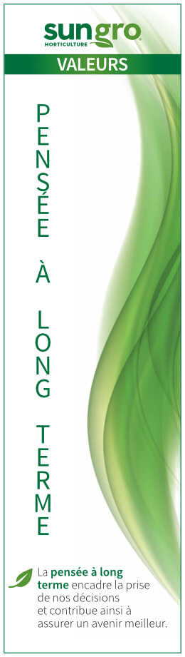 Sun Gro® Horticulture est l’une des plus importantes entreprises horticoles nord-américaines, avec plus de 300 employés et des clients partout dans le monde. Depuis ses modestes débuts en 1929, elle est devenue le premier fournisseur de mélanges de culture sans sol des 100 plus grands serristes et pépiniéristes de l’Amérique du Nord, expédiant plus de 70 000 cargaisons de produits par an. Les produits de Sun Gro sont fabriqués selon des normes rigoureuses et répondent à des critères élevés de qualité et de rendement.