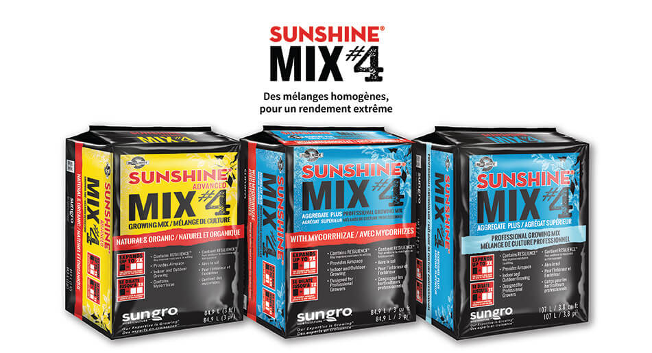 Les producteurs choisissent les mélanges de jardin Sunshine® pour une bonne raison. Cette prestigieuse marque de première qualité offre une grande variété de mélanges d’empotage et de tourbe de sphaigne canadienne pour répondre à une multitude de besoins de jardinage. Elle comprend des mélanges à usages multiples pour le jardinage général, dont beaucoup sont inscrits à l’OMRI et sont donc homologués pour le jardinage biologique. Les plantes aiment Sunshine®. Vous aussi, vous l’aimerez!