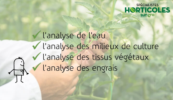 Sun Gro fournit les meilleurs services d’analyse pour répondre aux besoins de ses clients et optimiser tous leurs paramètres de culture, y compris :