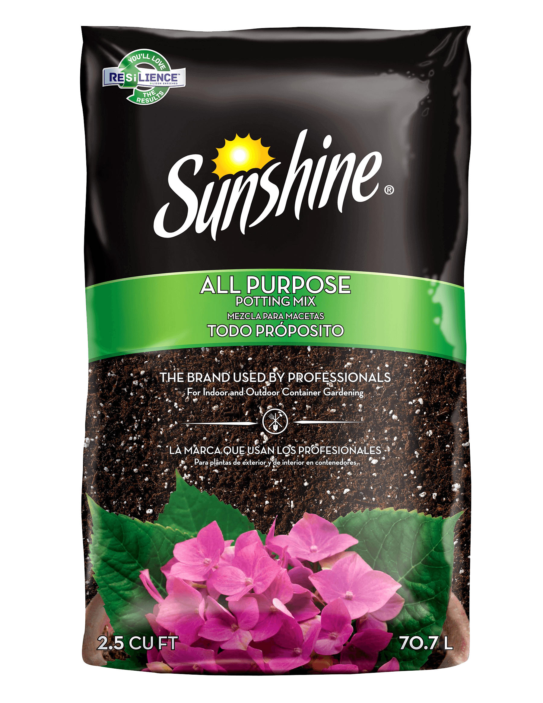 Sunshine® All Purpose Potting Mix is a multi-purpose blend formulated for a wide range of outdoor and indoor projects. This premium growing mix effectively retains nutrients and water. It is comprised of Canadian Sphagnum peat moss, perlite and wetting agent.
